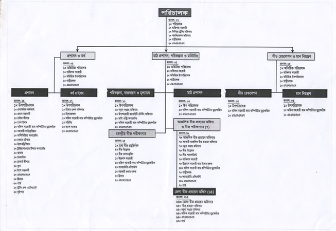 কেন্দ্রীয় বীজপরীক্ষাগার: ১টি কেন্দ্রীয় বীজপরীক্ষাগার, ৭টি বিভাগে আঞ্চলিক বীজ প্রত্যয়ন কর্মকর্তার অধীনে ১টি করে মোট ৭টি আঞ্চলিক বীজ পরীক্ষাগার ও ২৫টি জেলায় জেলা বীজ প্রত্যয়ন অফিসারের কার্যালয়ে স্থাপিত ২৫টি মিনি বীজ পরীক্ষাগার আছে।
